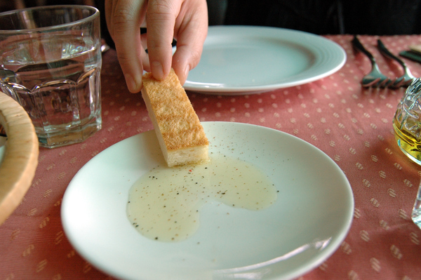 麵包沾上大蒜橄欖油跟香料,嗯............