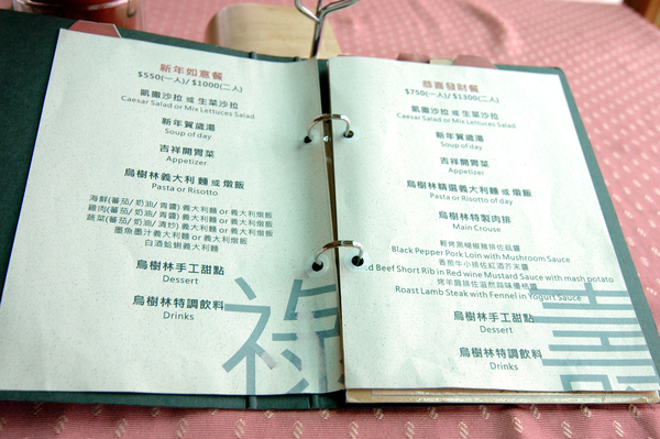 烏樹林除了套餐之外,還有單點的義大利麵跟燉飯,我們點的是套餐,餐點如何點就留給現場的人員發揮,我就不多解釋了。
