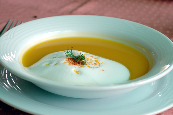 上湯了。說實在的,到這邊已經有飽足感了,我的是卡布基諾南瓜濃湯。又濃又甜的南瓜濃湯,很合我的口味。
