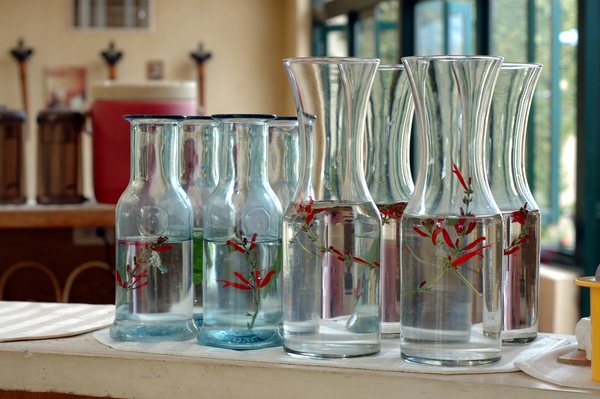 吧台上的水瓶,裡面裝著鼠尾草跟幾片薄荷葉,開水帶著淡淡的清香,視覺上也有特別的感受。