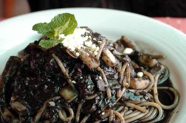 這是單點的墨汁魚義大利麵,簡小姐把一整盤都吃光了。