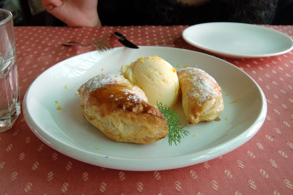 主餐後的甜點是烤布蕾跟蘋果派,烤布蕾的味道非常的濃郁,真的很棒,很合愛吃甜點的我。