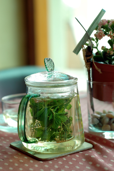後面菜園內現摘的香草茶,香草植物都是餐廳自己種的,茶裡面有新鮮的感覺。