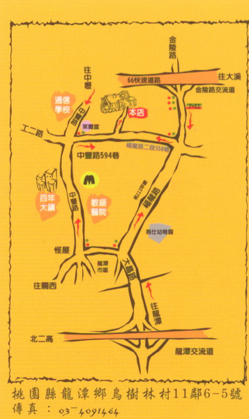下了龍潭交流道後,照著名片上的地圖前進,還滿好找的,只是轉進了中豐路594巷後,就必須放慢腳步,不然可能會錯過指標。