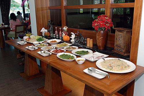 中式的餐檯上,滿滿的十幾道可口的菜餚,讓人食指大動。