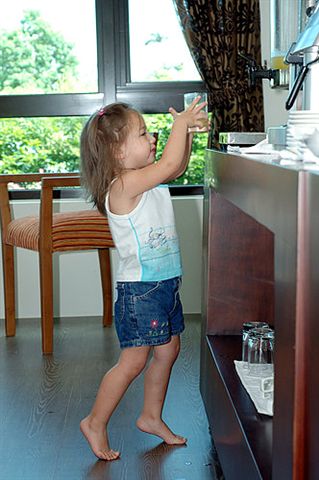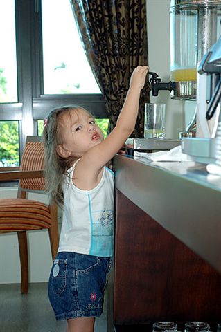 可愛的小妹妹,喜歡自己倒果汁喝。