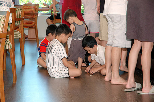 大人還在吃,小孩已經迫不急待的玩在一起。