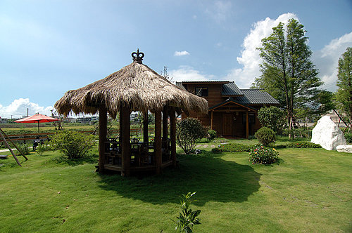 民宿內有廣大的庭園,小朋友在裡面玩耍相當的安全,河堤邊也用圍籬圍住,避免小孩接近發生危險。庭園內的涼亭內準備了茶具,在涼亭泡茶聊天時再是人生一大樂事。