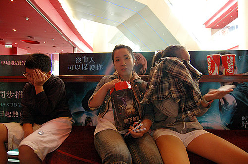 事情辦完後來到美麗華已經9點半,先去櫃檯拿爆米花跟可樂,等待的時間總是要吃點東西,兩個小鬼已經不喜歡讓我拍照了,每次拍照都躲躲藏藏的。