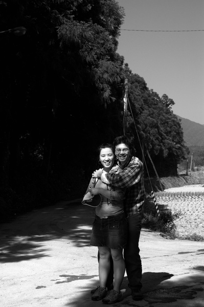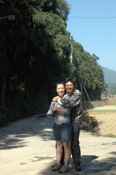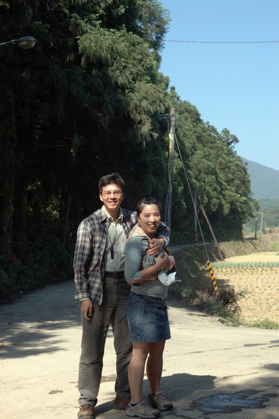 二十幾年後,在同樣的地點,一樣的人物,樹木一樣的翠綠,整個景色幾乎沒有太大的變化,後面那條路從碎石子路變成柏油路,多了幾根電線桿,兩個人的臉上也多了幾條皺紋,身旁也多了兩個小跟班(忘記帶他們一起演出了)。