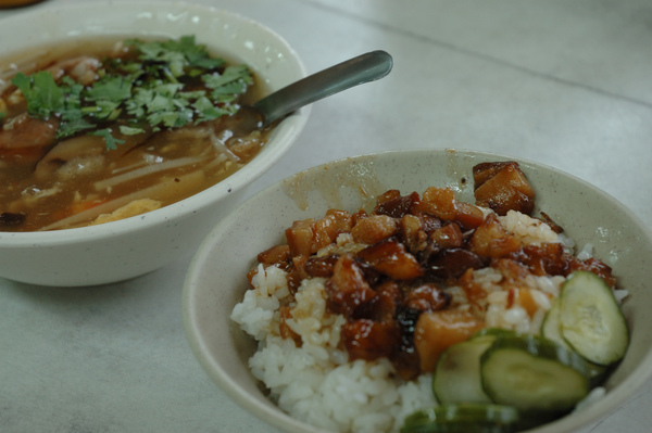 香菇肉羹跟滷肉飯也一樣甜甜的,滷肉飯還不錯吃,只是吃多了容易膩。