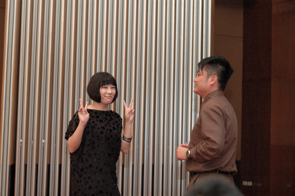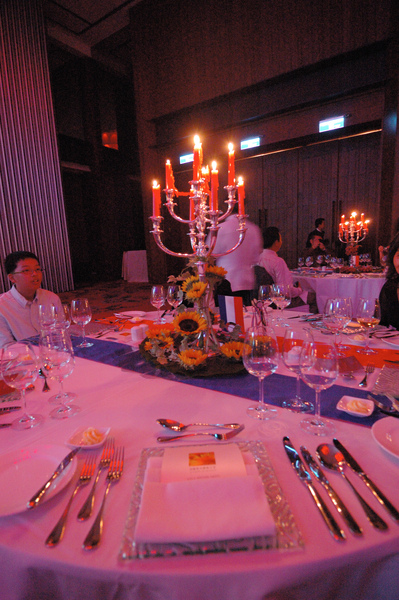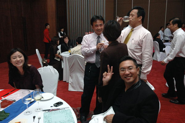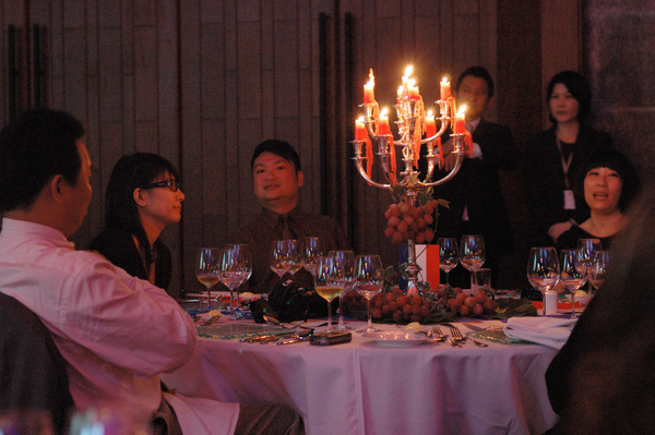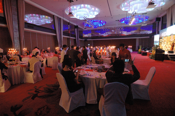 民宿團可以說是這場晚宴人數最多,上菜的空擋,大家都跑來跑去的互相敬酒,酒店是故意安排我們坐在角落的嗎?應該安排到舞台中間才對,這樣氣氛才會熱絡。