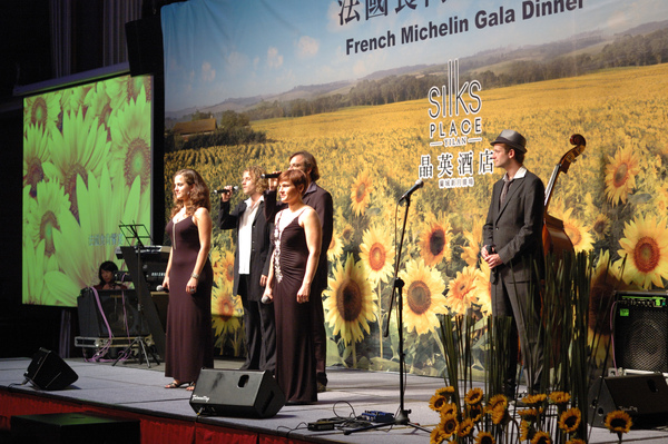 由米其林三星主廚準備的五道美食,加上三款嚴選酒品,還有全歐洲人聲樂團比賽冠軍的 Tonalrausch 與三人爵士樂團,陪伴我們一起享受美食,真是太棒了。