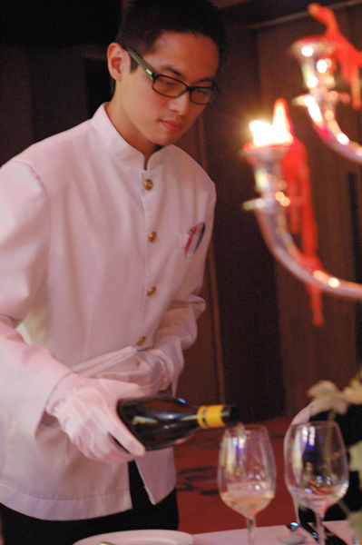 第二道菜還沒有上之前,就已經斟上第二種酒品,是香檳 Pouilly Fuisse '07,試喝了一口,味道有點強烈不會很酸,這是等一下要搭配海鮮的酒品。