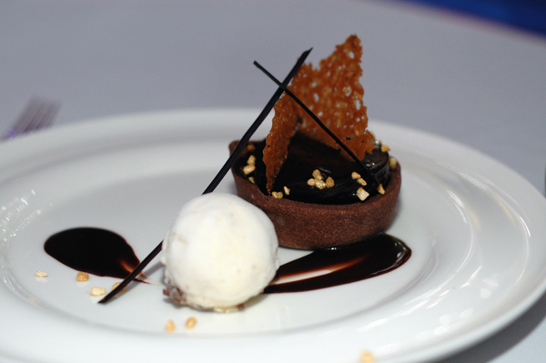 香草冰淇淋想當的純,應該是一點水也沒有加,剛上桌時還硬邦邦的,非常的香濃。巧克力塔內的巧克力醬,非常非常的濃...............,上面的風帆是用焦糖做的,又香又脆。