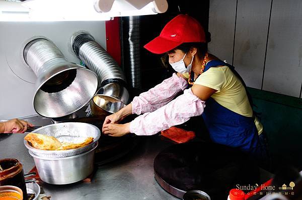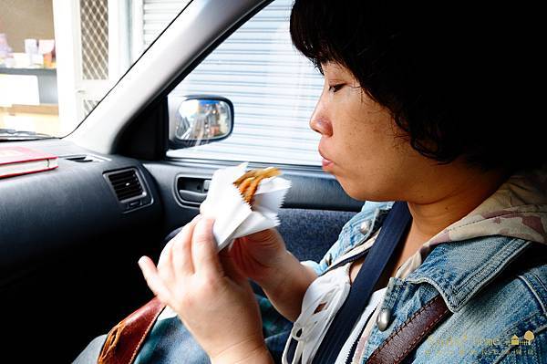 買了兩塊蔥油餅,加蛋不加蛋各一,上車之後馬上嚐看看味道怎樣,不加蛋的話,蔥油餅比較單薄,跟宜蘭的作法完全不同,量太小了,沒甚麼感覺。簡小姐吃加蛋的蔥油餅,真的是很好吃,尤其是不熟的蛋黃,爆漿出來更是美味,辣醬也是重要的元素之一。