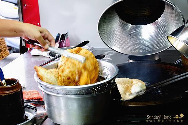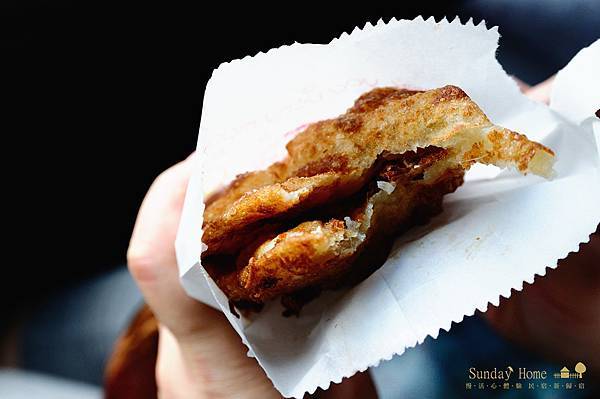 看著炸到澎起來的蔥油餅,和著蛋黃半熟的炸蛋,一起入口真不知道該怎樣形容這樣的美味,大家來跟著排隊吧!嚐一口,就知道為什麼大家願意排隊等那麼久,就只為這看起來不怎麼起眼的炸彈蔥油餅了。