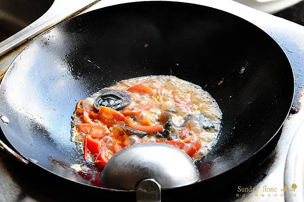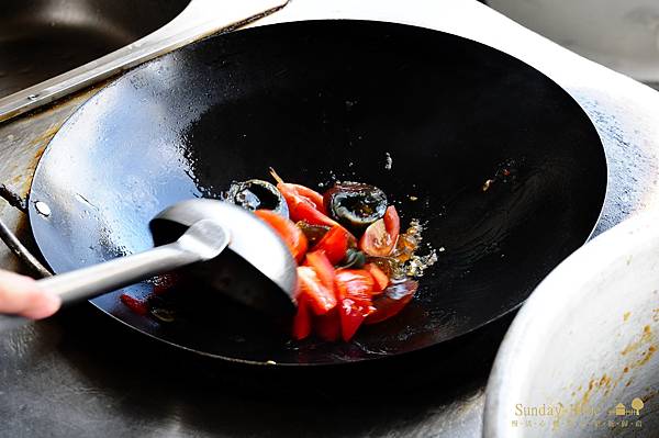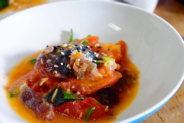 再來這道菜請各位看看鍋中的食材,沒錯是皮蛋跟番茄,皮蛋跟番茄和在一起會是甚麼味道,很難想像對吧!自己跑一趟就知道好不好吃。