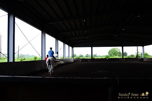 大洲馬場就位在陳定南紀念館的後方,離【宜蘭民宿】Sunday Home只有不到10分鐘的車程,馬場有廣大的放牧區,好天氣可以見到高大的駿馬在這邊悠然的走動,後方紅色屋頂的鐵皮屋,就是提供給大家體驗騎馬的室內場地,也就是說下雨天也可以騎喔!