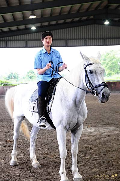下課後馬上被帶來騎馬的女兒,滿帥的。