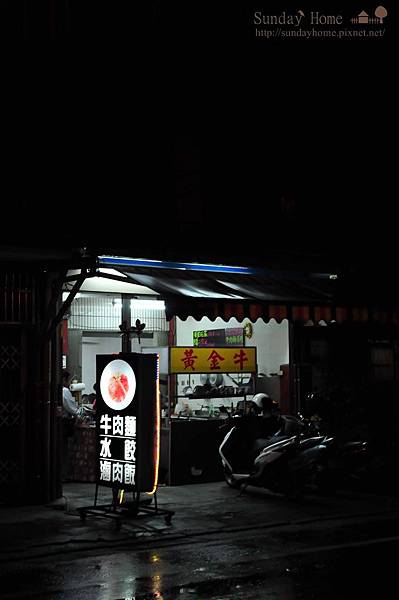 黃金牛牛肉麵位在五結鄉二結的一個偏僻的路上,基本上這附近沒有甚麼店面,晚上要來吃麵,遠遠的就看到這唯一亮亮的店面。不過第一次來的時候,繞來繞去就是找不到,原來星期二公休,招牌並不是很明顯,也沒有亮亮的店面可以指引,就在那繞來繞去才看到黑黑暗暗的黃金牛。