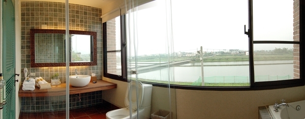 2.5 坪大的浴室空間,寬闊的視野,將浴缸放滿水,解放心靈融入田園景色中。
