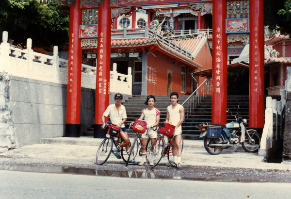 大里天公廟,三個人之中我最年幼,中間那位是阿春,現在在台北建設公司當協理(反正職位不低),這兩位從小到現在都很照顧我。